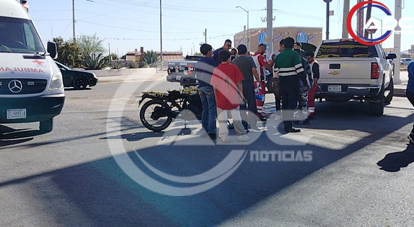 Cd. Delicias, Chih.- La tarde de este viernes 14 de noviembre se registró un accidente vial en el cruce de la avenida Fernando Baeza y avenida Solidaridad, a la altura de la glorieta, donde una motocicleta y una pick up se vieron involucradas. El percance generó una rápida movilización de agentes de Vialidad y elementos de la Policía Municipal.
