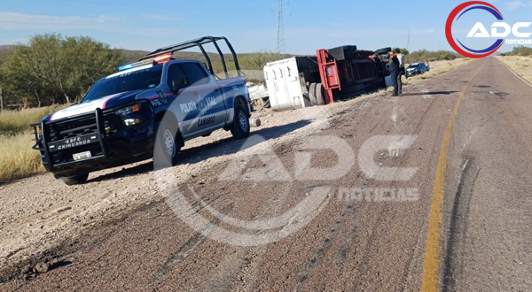 Camargo, Chih.- La mañana de este sábado se reportó otra volcadura en la carretera Camargo-La Perla, kilómetro 15, donde un transmigrante guatemalteco perdió el control de un camión tipo torton blanco y terminó volcando al lado de la carretera.