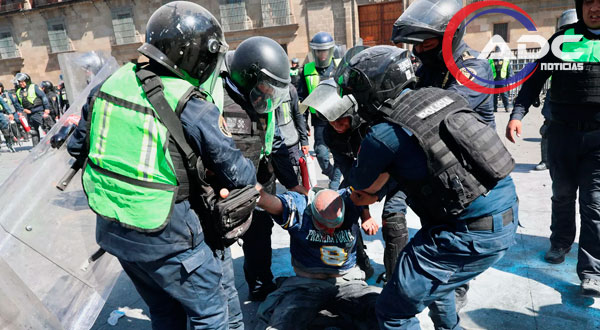 En tanto, policías respondieron con gas lacrimógeno y polvo de extintores.