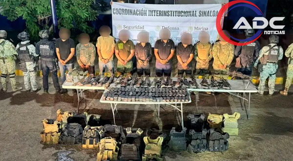 La operación de búsqueda continuó y lograron la detención de nueve personas, que tenían consigo un importante lote de armamento y equipo táctico: