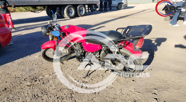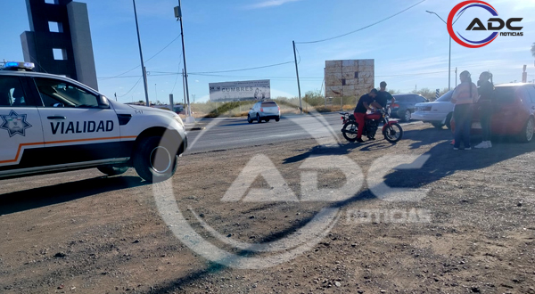 Cd. Delicias, Chih.- Un accidente vial tipo choque entre un automóvil Volkswagen Golf en color rojo y una motocicleta Itálica se registró en la entrada del fraccionamiento Cumbres del Deporte, en donde el motociclista resultó lesionado y tuvo que ser atendido por paramédicos de Cruz Roja Mexicana para posteriormente ser trasladado al nosocomio.