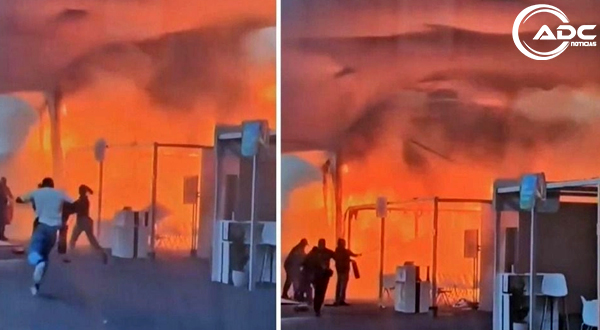 En los videos tomados por los mismos participantes de la cumbre climática, se puede ver cómo los pabellones se están incendiando con rapidez, mientras el personal del staff trata de sacar a las personas.