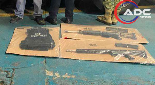 El individuo fue llevado de regreso al punto donde inició la intervención, donde señaló una camioneta GMC como suya. Al revisar el vehículo, se encontró un chaleco táctico negro con un cargador y cartuchos calibre .223. Minutos después, en una construcción en obra negra cercana, los elementos aseguraron dos armas largas —una calibre .223 y otra calibre .308— ambas con cargadores abastecidos, además de cartuchos adicionales.