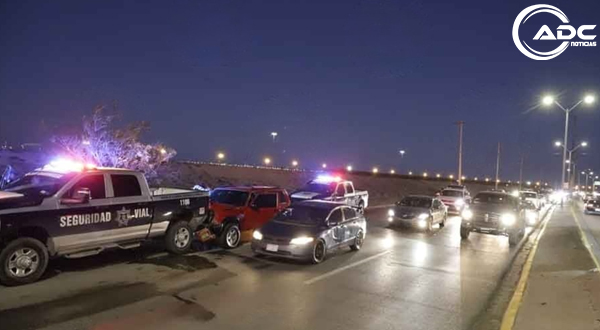 Juárez, Chih.- Una unidad de Seguridad Vial resultó dañada esta tarde luego de ser chocada por alcance mientras los agentes concluían una infracción sobre el bulevar Juan Pablo II.