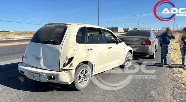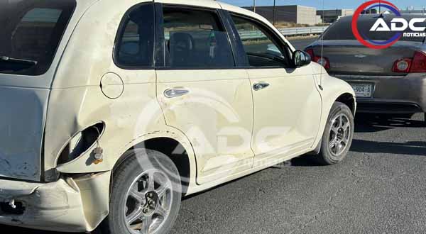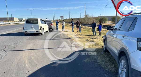 Cd. Delicias, Chih.- Se registró un accidente vehicular en la carretera federal, justo después del puente del Cielo Vista, que involucró a tres vehículos con placas del estado de Chihuahua: un Chrysler blanco, un Chevrolet Malibú dorado y una SUV Volkswagen T-Cross.