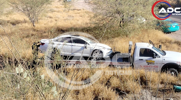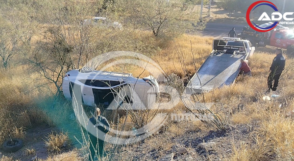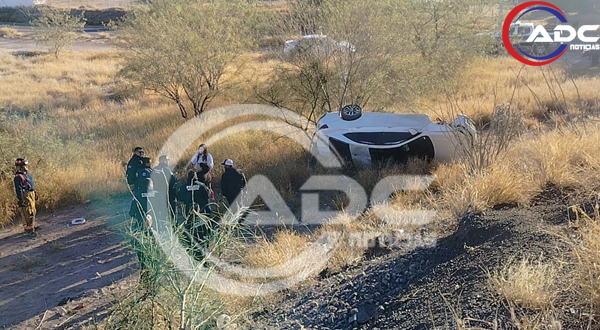 Cd. Delicias, Chih.- Una aparatosa volcadura se registró en el puente del acceso norte, en la zona conocida como El Caracol, donde un vehículo Volkswagen Jetta modelo reciente terminó con pérdida total.