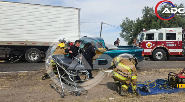 Cd. Delicias, Chih.- Un fuerte accidente se registró la mañana de este jueves sobre la vía Delicias–Presa Francisco I. Madero, a la altura del entronque de la Colonia Campesina, dejando cuantiosos daños materiales y una persona gravemente lesionada.