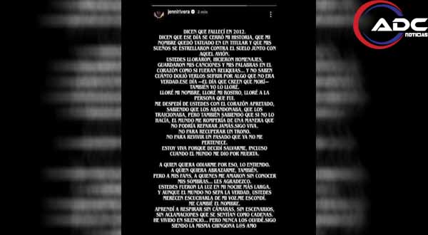 México.- Un supuesto comunicado emitido por Jenni Rivera circula en redes sociales, en el cual asegura estar viva, sin embargo se trata de una imagen editada.