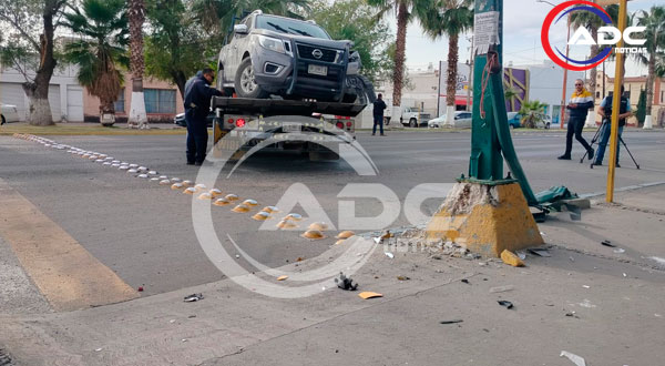 Cd. Delicias, Chih.- Tras impactar con un poste de una lámpara al exterior del edificio Lerdo de Tejada, el conductor de una pickup tipo Frontier en color gris de la marca Nissan se dio a la fuga de manera pedestre sin ser localizado por policías municipales quienes acudieron como primeros correspondientes, por lo que solo pudieron resguardar la zona y solicitar la presencia de las demás autoridades competentes.