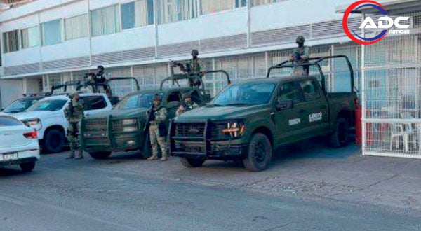 Chihuahua, Chih.- Elementos de la Guardia Nacional, Ejército Mexicano, Policía Estatal y Fiscalía llevaron a cabo un operativo de seguridad a las afueras de las instalaciones de la Fiscalía General de la República por la consignación de 11 integrantes de un grupo delictivo en Aldama.