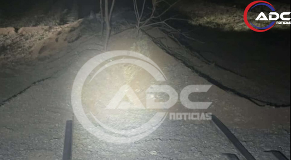 Vía del tren en la placa kilométrica A-1489+412 en Saucillo: El paso ferroviario continúa completamente interrumpido.
