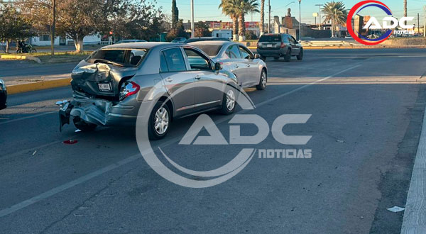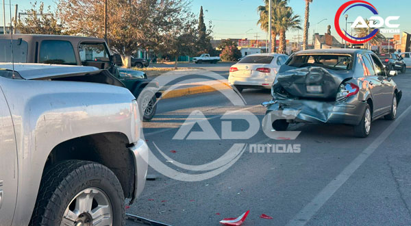 Cd. Delicias, Chih.- La tarde de este lunes se registró un triple accidente vehicular en la ciudad de Delicias, el cual dejó como saldo cuantiosos daños materiales y una persona trasladada a un hospital para descartar lesiones de consideración.