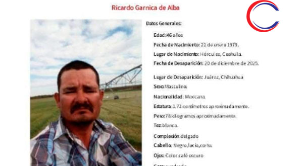 Camargo, Chih.- La Fiscalía General del Estado de Chihuahua (FGE) emitió un reporte de desaparición para dos hombres, uno originario de Camargo y otro de Hércules, quienes fueron vistos por última vez en Ciudad Juárez, cuando presuntamente intentaban cruzar a Estados Unidos.