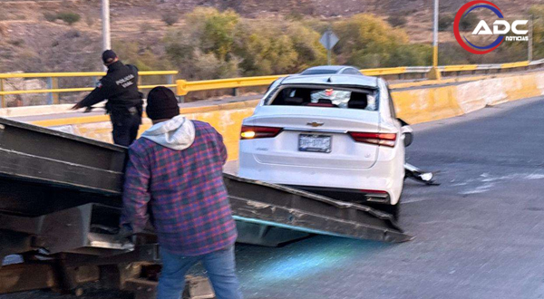 Chihuahua, Chih.- Un hombre y una mujer resultaron lesionados luego de un aparatoso accidente vial registrado sobre el puente de la prolongación 20 de Noviembre y Lombardo Toledano.