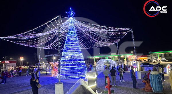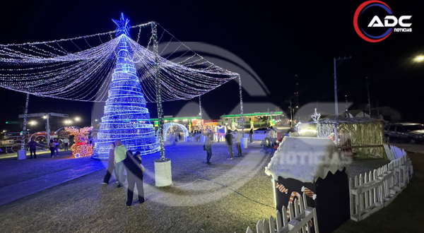 Camargo, Chih.- Durante la tarde y parte de la noche del 25 de diciembre, un gran número de familias de Camargo acudió a la Puerta de Camargo, ubicada en el cruce de las avenidas Juárez y Centenario con Agustín Melgar, para disfrutar del ambiente navideño instalado en el lugar.