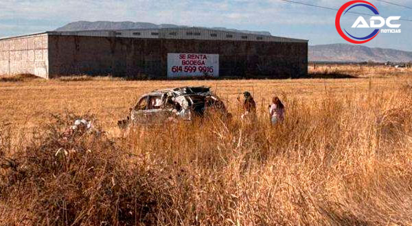Chihuahua, Chih.- Una camioneta tipo minivan sufrió una aparatosa volcadura en el kilómetro 38+500 de la carretera a Juárez, después de que saliera de la carretera y diera varios giros.