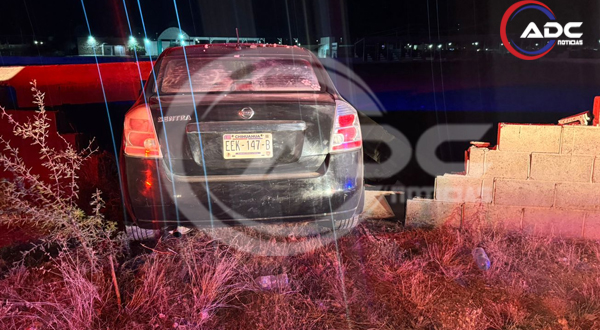 Camargo, Chih.- Un adolescente de 16 años protagonizó un accidente vial la noche del lunes en la ciudad de Camargo, luego de perder el control del vehículo que conducía e impactarse contra la barda perimetral del campo de beisbol del Colegio de Bachilleres, Plantel 15.