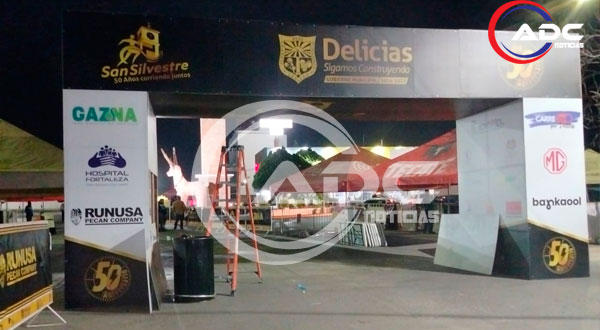 Cd. Delicias, Chih.- Delicias.- La ciudad se encuentra lista para recibir a corredores locales, nacionales e internacionales en la tradicional Carrera San Silvestre, que celebra este año su 50 aniversario. Los preparativos se llevaron a cabo desde la tarde de este martes, con un operativo de seguridad y la instalación del arco de meta en la calle Central, uno de los puntos principales del recorrido.