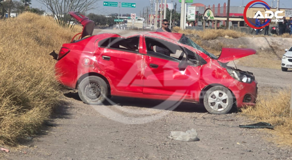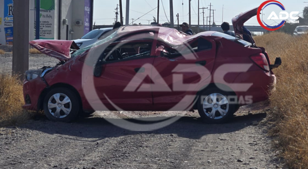Cd. Delicias, Chih.- Una volcadura de consideración se registró sobre la carretera federal número 45, a la altura de la empresa Tractores del Norte, donde pese a lo aparatoso del accidente no se reportaron personas con lesiones de gravedad. El conductor y un familiar que arribó posteriormente fueron valorados por cuerpos de emergencia.