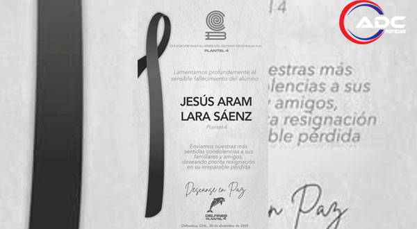 El Colegio de Bachilleres del Estado de Chihuahua (Cobach) manifestó públicamente su pesar por el fallecimiento de Aram Lara, alumno del plantel número 4, y envió sus condolencias a familiares y seres queridos.