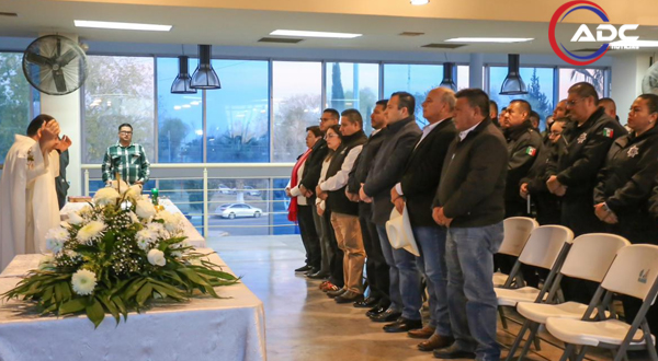 Durante el acto religioso, oficiado por Fray Gerardo, de la orden de los Franciscanos, y donde también estuvo presente el director de Seguridad Pública, Víctor Hugo Soto, así como elementos activos de la corporación, el alcalde destacó que esta celebración se ha convertido en una tradición de la dirección de Seguridad Pública, al iniciar la conmemoración encomendándose a Dios y recibiendo la bendición para el año 2026, tanto para los elementos activos como para sus familias.