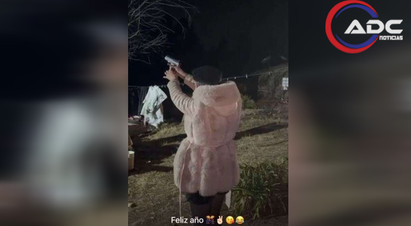 Guadalupe y Calvo, Chih.- Un video que circula en redes sociales muestra a Arlet Marín Escárcega, primera secretaria de la presidenta municipal Ana Laura González Abrego, disparando al aire durante la celebración de Año Nuevo en Guadalupe y Calvo.