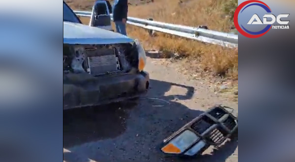Aldama, Chih.- Un accidente entre dos camionetas se registró en la carretera Aldama-Chihuahua, cerca del C4, involucrando una Dodge Nitro gris, perteneciente a la Policía Municipal, y una Ford Sport Trac color arena.