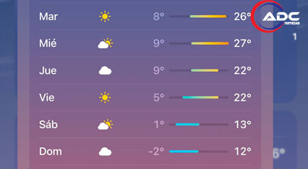 A partir del jueves, se prevé un descenso en las temperaturas, alcanzando su punto más bajo el domingo, con una mínima de -2 grados centígrados y una máxima de 12 grados centígrados.