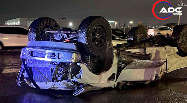 Una ambulancia acudió al lugar para atender a los ocupantes de la camioneta volcada; únicamente presentaban golpes leves y no requirieron traslado a un hospital.