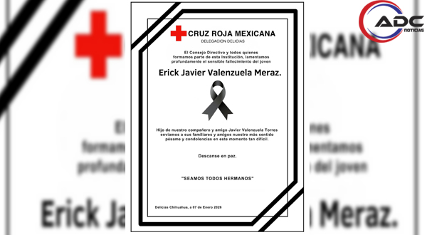 Cd. Delicias, Chih.- Corporaciones de emergencia, rescate y auxilio de la región expresaron su profundo pesar por el sensible fallecimiento del joven Erick Javier Valenzuela Meraz, hecho que ha generado consternación entre compañeros, amigos y familiares.