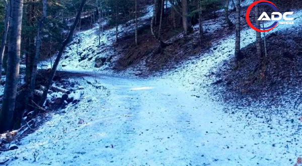 Las imágenes muestran caminos y zonas naturales con una delgada capa de nieve, resultado de las bajas temperaturas que se presentaron en la región.