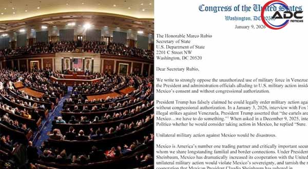 Estados Unidos.- Un grupo de 75 congresistas demócratas de Estados Unidos envió una carta al secretario de Estado, Marco Rubio, para rechazar cualquier acción militar unilateral contra México o Venezuela sin autorización del Congreso y sin el consentimiento del gobierno mexicano.