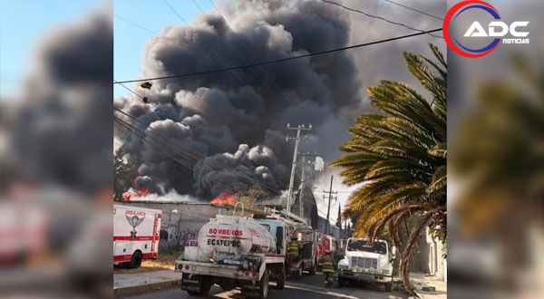 Edomex.- Un incendio registrado al interior de una bodega utilizada para el almacenamiento de cartón provocó la movilización de elementos de Bomberos y de Protección Civil la tarde de este jueves en el municipio de Ecatepec, Estado de México.