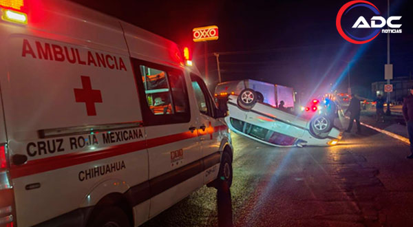 Chihuahua, Chih.- Una mujer que conducía un Chevrolet Zafira perdió el control del vehículo, cruzó el camellón y volcó en los carriles de sentido contrario, dejando a tres personas lesionadas sobre la avenida Juan Pablo II.