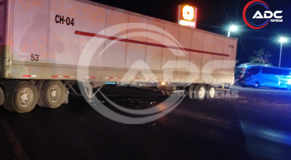 Cd. Delicias, Chih.- La mañana de este sábado, alrededor de las 6:30 horas, se registró un accidente vial sobre la carretera federal 45, a la altura de la gasolinera Oxxo y el hotel Los Cedros, luego de que una motocicleta impactara contra la caja de un tráiler que se atravesó en la vía.