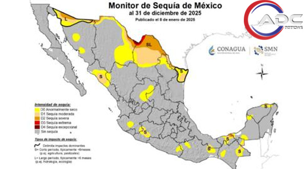 En contraste, 24 municipios fueron clasificados en la categoría D0 o “anormalmente seco”, condición considerada como una alerta previa a la sequía y que abarca el 23.4 por ciento del territorio.