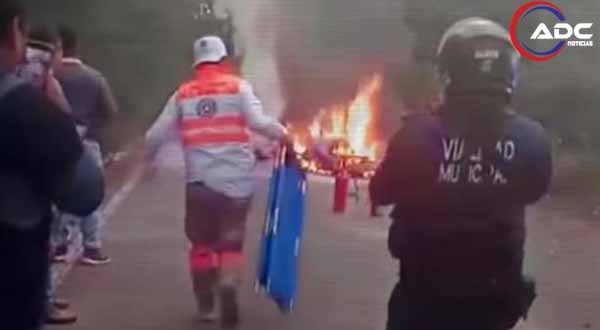 Comenzaron a circular imágenes de la escena, donde puede verse cómo personal de Protección Civil del municipio apaga el fuego de las motos y los cuerpos con extintores.