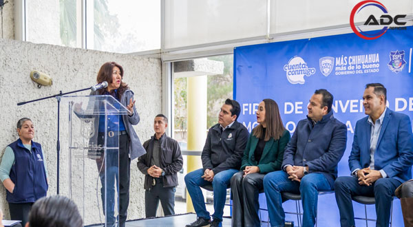 Cd. Delicias, Chih.- Con el objetivo de reducir factores de riesgo asociados a la violencia de género, violencia familiar y la violación de derechos humanos de niñas, niños y adolescentes, este martes 13 de enero de 2026 se llevó a cabo la firma del Convenio Específico de Colaboración entre la Secretaría de Seguridad Pública del Estado, la Presidencia Municipal de Delicias y la asociación civil Justicia para Nuestras Hijas A.C., en un acto realizado en el Centro Cultural Delicias.