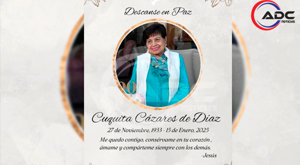 Cd. Delicias, Chih.- Recordamos con cariño y mucho amor a la señora Cuquita Cázares de Díaz, pilar de la familia Díaz Cázares.
