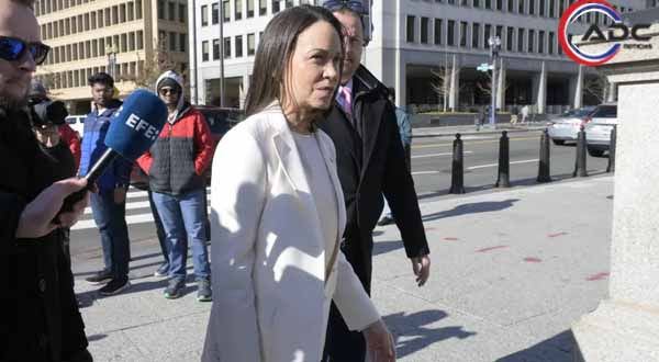 Machado llegó al recinto presidencial poco antes de las 12:30 horas locales (17:30 GMT). Vestida con traje chaqueta blanco, descendió de un vehículo sin dar declaraciones públicas y fue acompañada al interior para un almuerzo privado.