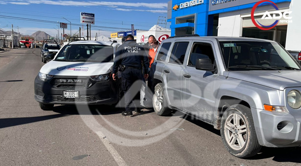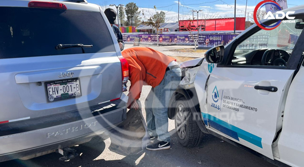 Camargo, Chih.- Un accidente vial se registró sobre la avenida Centenario, entre 2 de abril y Agustín Melgar, cuando una camioneta Dodge Ram, color blanco, propiedad de la Junta Municipal de Agua y Saneamiento de Camargo, impactó por alcance a una camioneta Jeep gris que transitaba por el carril central y se detuvo, presuntamente por el semáforo. Al intentar esquivar, el golpe se produjo en el costado trasero derecho de la Jeep.