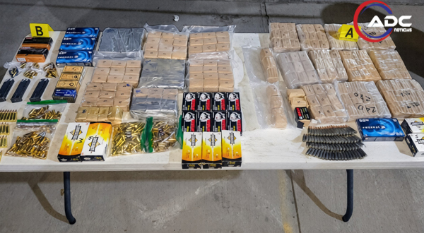La captura ocurrió el viernes por la tarde sobre la carretera 45, tramo Juárez-Ahumada, a la altura del kilómetro 302. La pareja viajaba en un Nissan Versa blanco con placas de Colorado (ELDI68), y al inspeccionar el vehículo, los agentes detectaron un doble fondo en los asientos delanteros donde ocultaban 5 mil 521 balas de distintos calibres.
