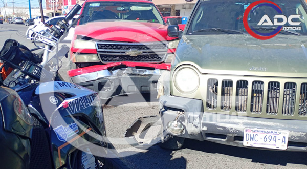 El accidente involucró una camioneta Chevrolet Silverado roja de doble cabina, la cual impactó de frente el costado de un Jeep Liberty verde, que recibió el golpe en la puerta del copiloto. A pesar de lo aparatoso del choque, no se reportaron personas lesionadas.