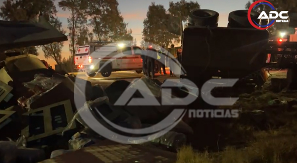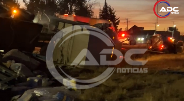 Saucillo, Chih.- La mañana de este lunes se registró una fuerte volcadura de un tráiler sobre la carretera federal número 45, a la altura de Estación Saucillo, justo bajando el puente de Saucillo, en el sentido de circulación de Saucillo hacia Delicias.