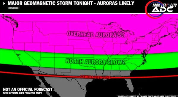 Por su parte, el sitio MyRadar Weather informó que, debido a la evolución de esta tormenta solar, las auroras boreales podrían ser visibles en Alaska, Canadá, gran parte de Estados Unidos e incluso en el norte de México.