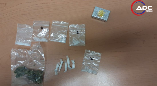 Al darle alcance cuadras más adelante y efectuar una revisión corporal preventiva, los oficiales localizaron entre sus ropas una pequeña caja en forma de regalo que contenía 10 envoltorios transparentes con una sustancia cristalina y granulada con las características propias de la droga conocida como cristal, así como una bolsa de plástico con una hierba verde y seca con características similares a la marihuana.