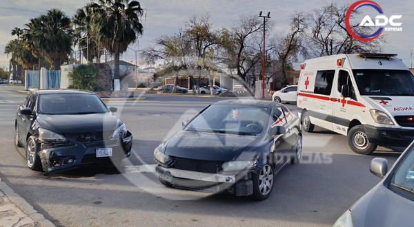 Cd. Delicias, Chih.- Un accidente vial volvió a registrarse en el cruce ubicado frente al Teatro de la Ciudad, donde dos vehículos, ambos de color negro, protagonizaron un choque que dejó como saldo únicamente daños materiales y una persona con lesiones leves.