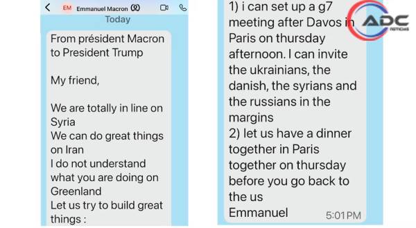 En los mensajes atribuidos a Macron, el mandatario francés propone celebrar una cumbre del G-7 en París e invitar a Ucrania, Dinamarca e incluso Rusia. Macron cuestiona la posición estadounidense sobre Groenlandia y recalca la importancia de respetar la soberanía e integridad territorial de los Estados.