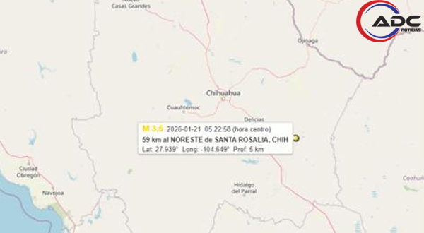 El organismo detalló que el movimiento telúrico ocurrió a las 5:22:58 de la mañana del miércoles 21 de enero, con epicentro ubicado a 59 kilómetros al noreste de la cabecera municipal de Camargo, en la zona de Santa Rosalía. El sismo tuvo una magnitud de 3.5 grados y una profundidad aproximada de cinco kilómetros.