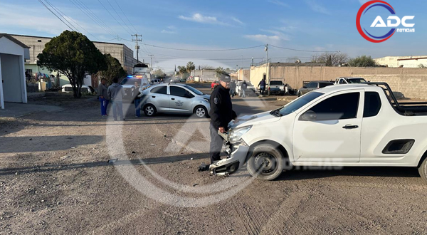 Camargo, Chih.- uerte choque entre camioneta y taxUn percance vehicular se registró en el cruce de las calles Juan Escutia y Manuel Ojinaga, donde dos vehículos resultaron con daños materiales, lo que generó la movilización de las autoridades al lugar del accidente.